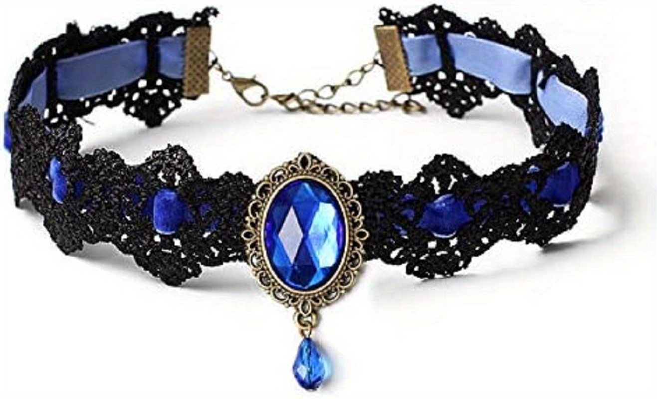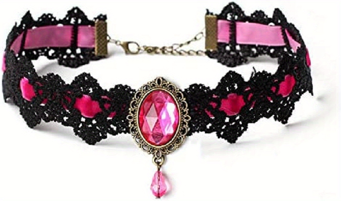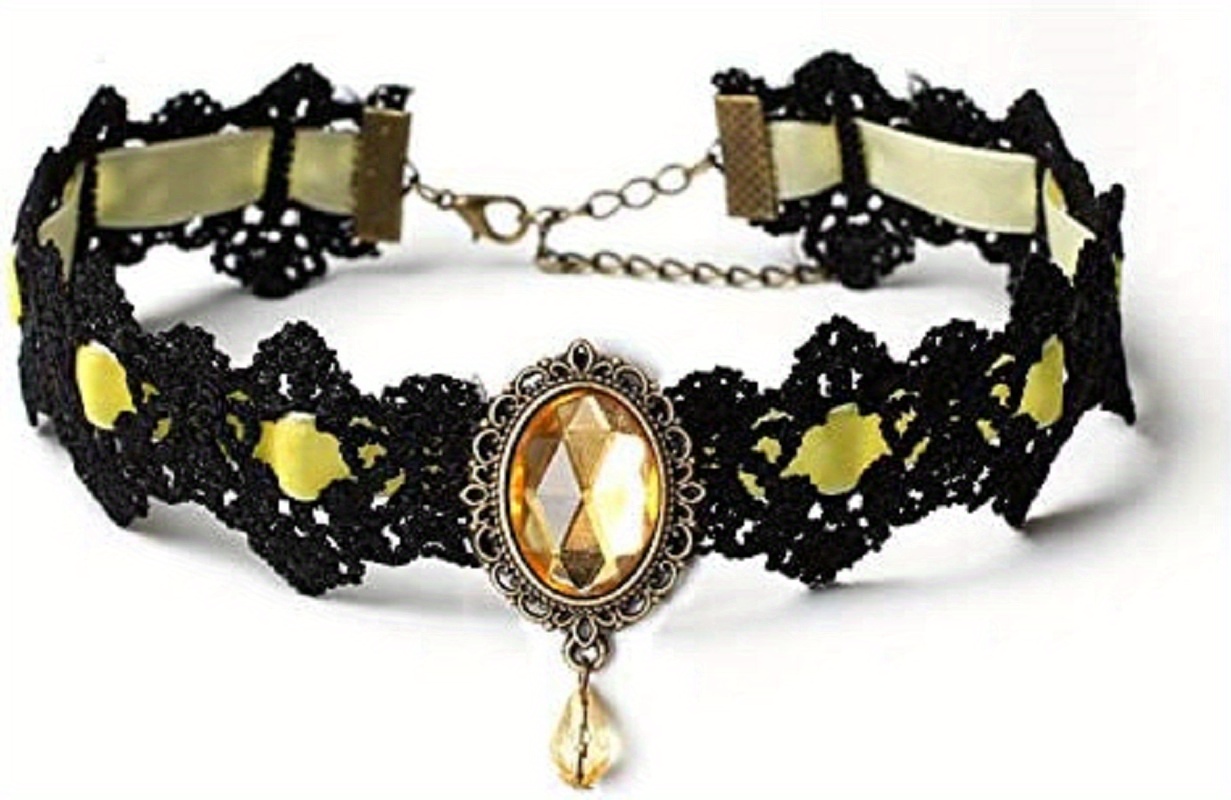 • Black Lace Gothic Collar Vampire Collar Pendant Chain Rhinestone Punk Halloween Costume Jewelry Black Lace Gothic Collar Vampire Collar Pendant Chain Rhinestone Punk Halloween Costume Jewelry