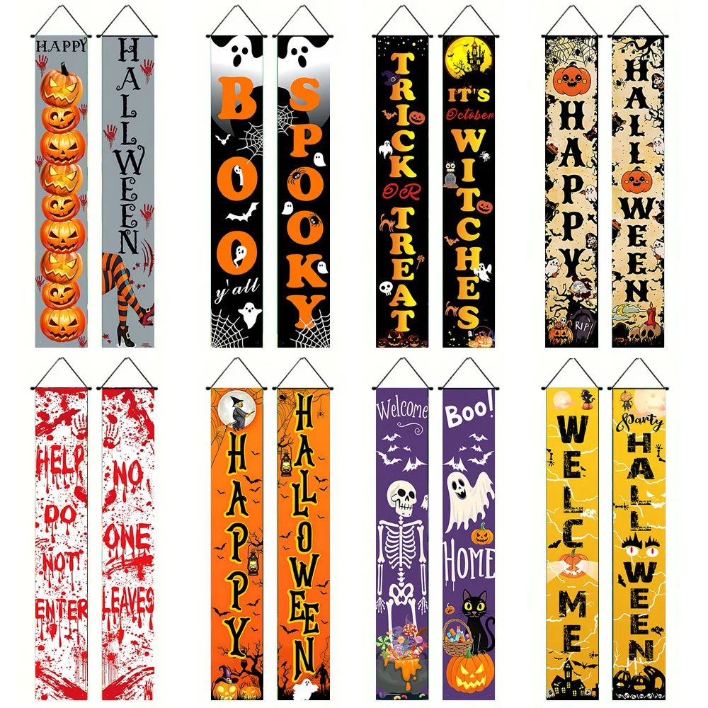 • Halloween Couplet Horror Theme Festival Carnival Party Decoration Polyester Backdrops Pumpkin Skeleton Pattern Door Curtain Halloween Couplet Horror Theme Festival Carnival Party Decoration Polyester Backdrops Pumpkin Skeleton Pattern Door Curtain