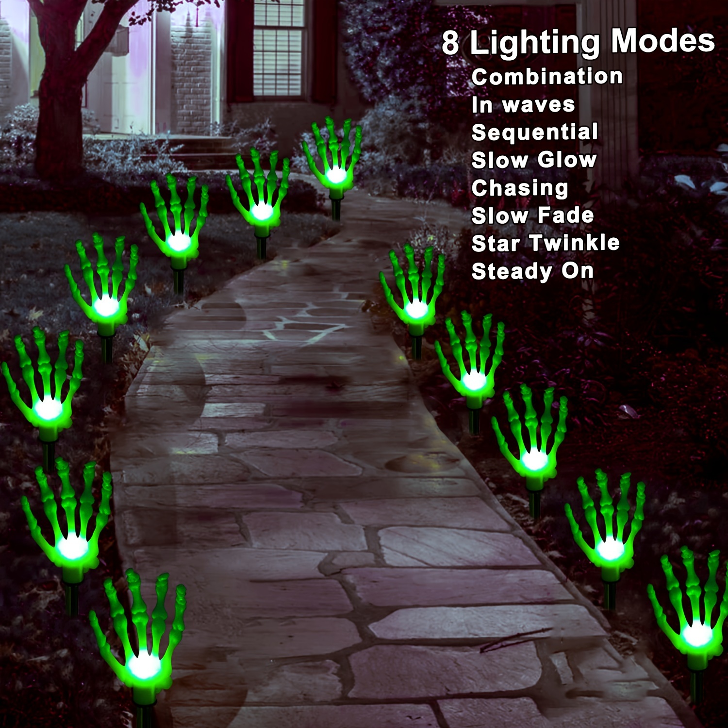• [Fast Arrival] 12pcs Solar-Powered Halloween Garden Lights - Waterproof LED Skeleton Hands, 8 Lighting Modes, Outdoor Yard & Lawn Decorations for Spooky Ambiance [Fast Arrival] 12pcs Solar-Powered Halloween Garden Lights - Waterproof LED Skeleton Hands, 8 Lighting Modes, Outdoor Yard & Lawn Decorations for Spooky Ambiance