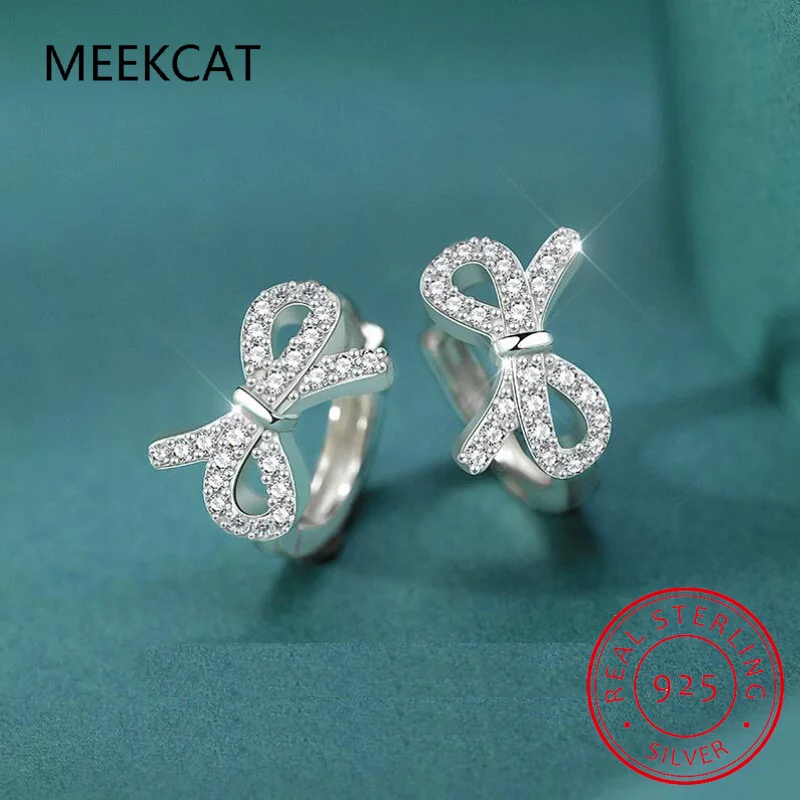 Baby Princess 925 Silver Shiny Zircon Cute Bowknot Hoop Earring For Girl Child Woman Aros Huggies Loop Earring Korea Jewelry