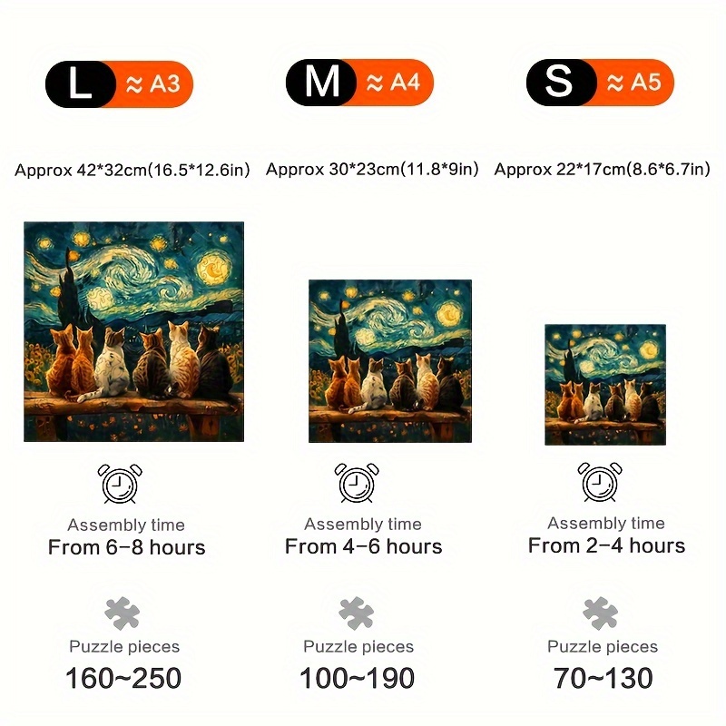 • Starry Night Colorful Cat Wooden Puzzle - Unique Shaped Animal Jigsaw For Adults, Stress-Relief & Brain Teaser, Perfect Gift For Birthdays, Christmas, Halloween Starry Night Colorful Cat Wooden Puzzle - Unique Shaped Animal Jigsaw For Adults, Stress-Relief & Brain Teaser, Perfect Gift For Birthdays, Christmas, Halloween