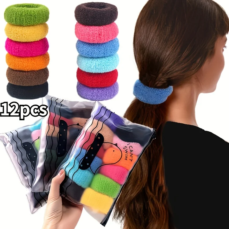- 12pcs Large Stretch Thick Hair Ties For All Hair Types Seamless Terry Cloth Elastics Ponytail Holders Hair Accessories No Damage 12pcs Large Stretch Thick Hair Ties For All Hair Types Seamless Terry Cloth Elastics Ponytail Holders Hair Accessories No Damage