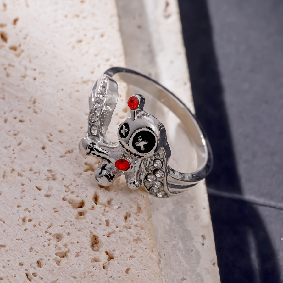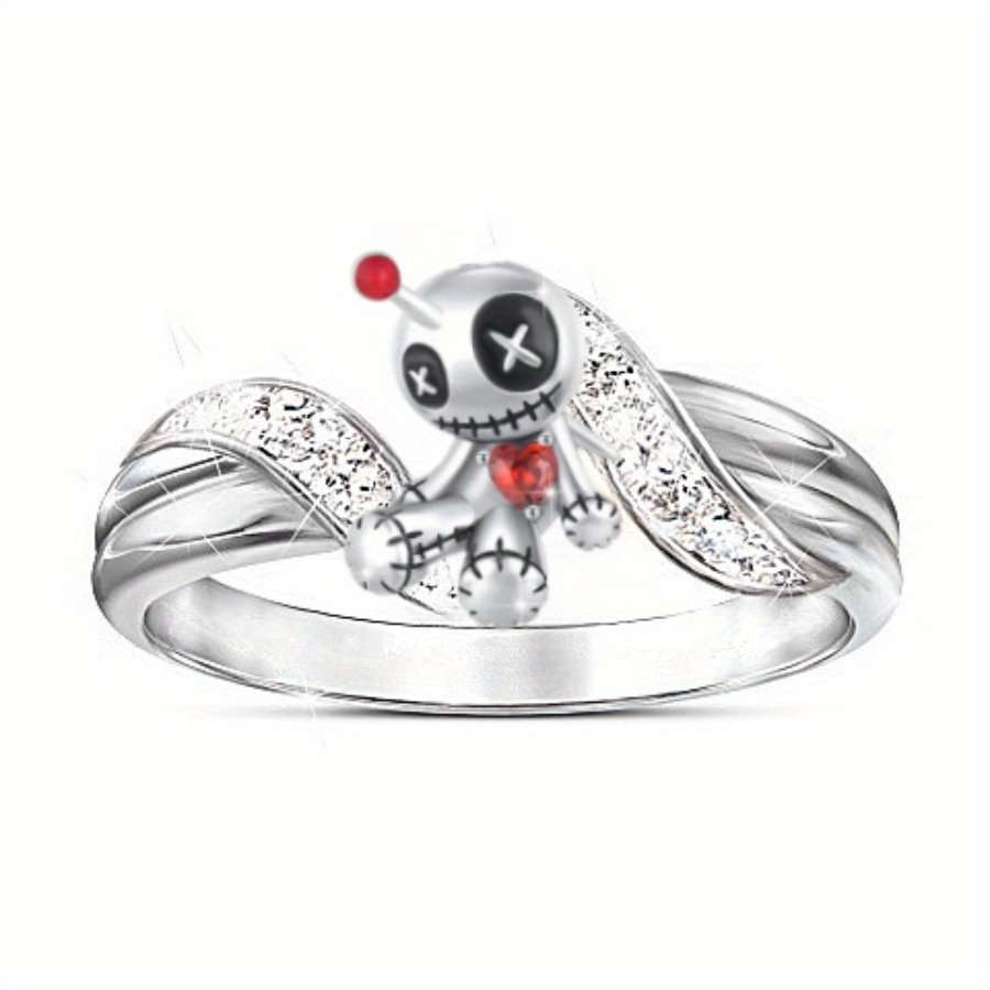 1pc Gothic Cartoon Red Heart Voodoo Doll Ring – Whimsical Devil Design with Glass & Alloy Accents, Edgy Halloween Jewelry Gift for Women, Costume Accessory | Whimsical Jewelry | Alloy Construction