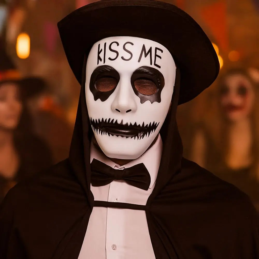 Dress Up Props White Makeup Halloween Mask Full Face Hand-painted Street Dance Mask Scary Hip Hop Mask Kids Adult