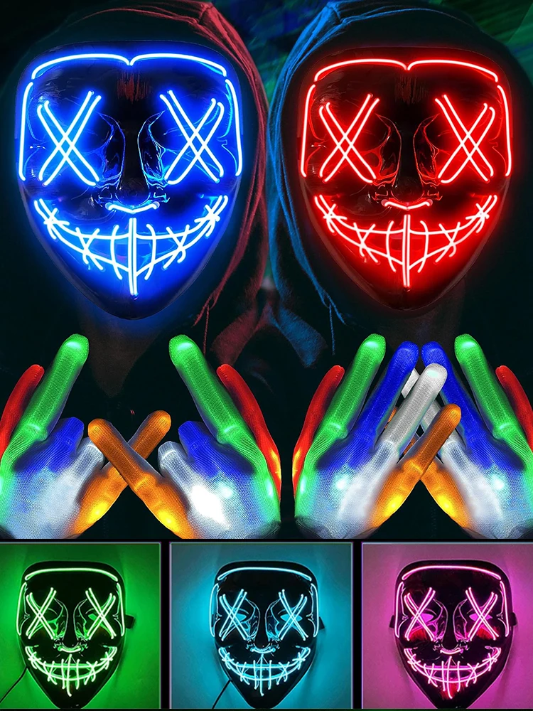 - Halloween Letter V Horror Mask and colorful gloves Wireless Scary Glowing Mask for man women Festival party costume supplies Halloween Letter V Horror Mask and colorful gloves Wireless Scary Glowing Mask for man women Festival party costume supplies