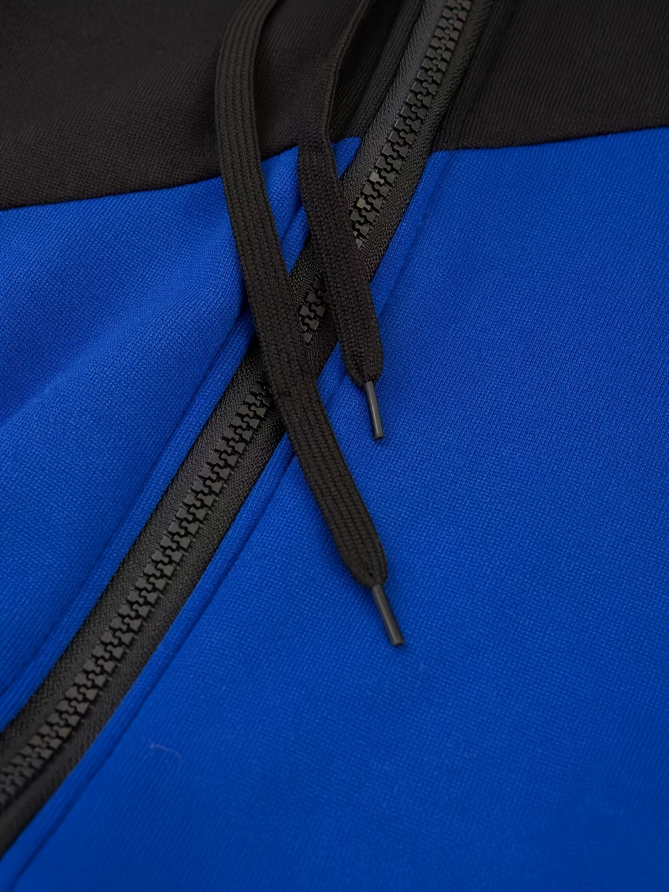 - Stylish Men's Color Block Varsity Jacket - Water-Resistant Zip-Up Design with Adjustable Hood, Soft Fleece Lining, and Multiple Pockets - Perfect for Casual Outdoor Activities and Sports Events Stylish Men's Color Block Varsity Jacket - Water-Resistant Zip-Up Design with Adjustable Hood, Soft Fleece Lining, and Multiple Pockets - Perfect for Casual Outdoor Activities and Sports Events